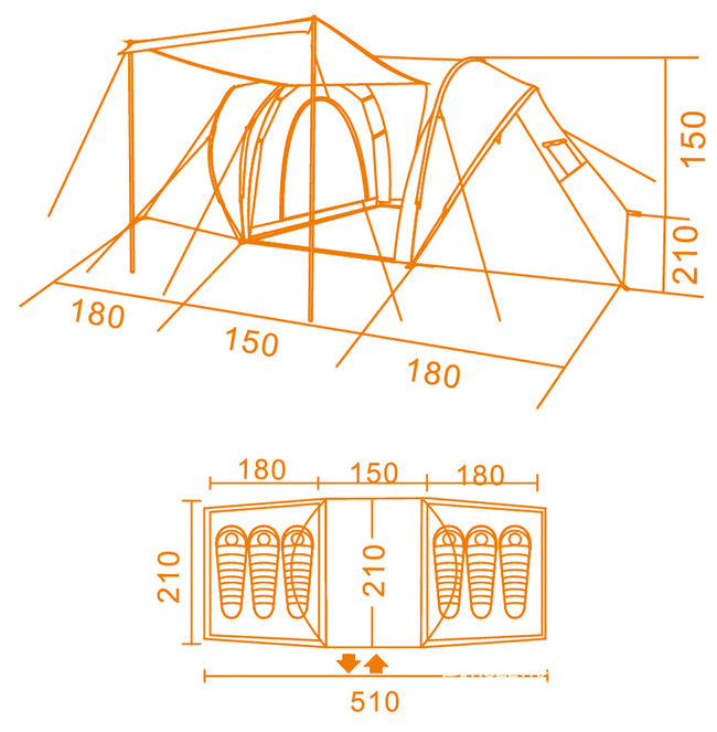 - Восьмимісний намет з великим та містким тамбуром.