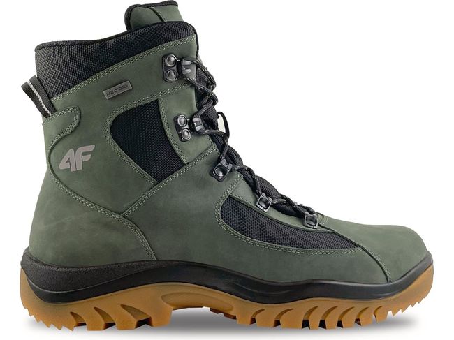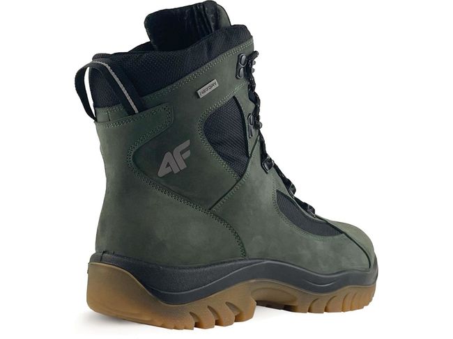 4F OBMH259 Olive — Високі черевики для спеціальних завдань. Ця модель в стилі високих мілітарі-трапперів впорається з будь-якою зимовою погодою. Верх із мембраною NeoDRY захистить від води, бруду та снігу. А завдяки ізоляції 3M Thinsulate™ він також забезпечить тепловий комфорт при низьких температурах.