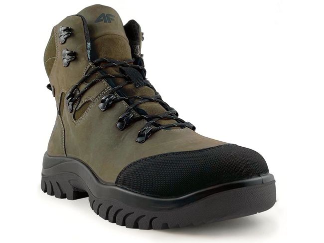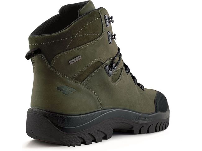 4F OBMH260 Olive — Модель виконана з натуральної шкіри, має знімні устілки, оброблені мікрофіброю з іонами срібла. М'який текстильний комір взуття запобігає натиранню. Розроблено як трекінгове взуття, для добре впорядкованих стежок і легкої гірської місцевості. Язичок додатково захищає від несприятливих погодних умов.