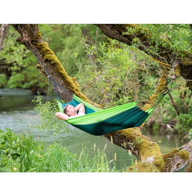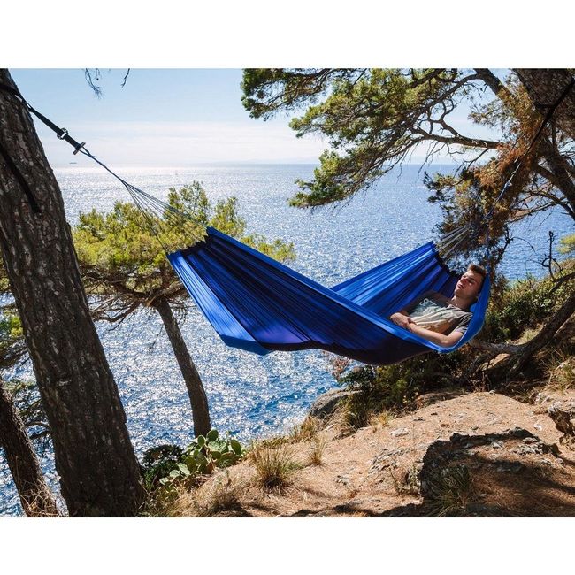 Amazonas Silk Traveller - надзвичайно м`який гамак для однієї людини. Виготовлений із парашутного шовку, дуже міцний і приємний до тіла. Розрахований на навантаження до 150 кг. Гамак просторий, завдяки великій кількості натяжок забезпечує надійне, стійке кріплення. У складеному вигляді гамак займає мінімум місця, є чохол для зберігання. Чудовий вибір аксесуара для довготривалого кемпінгу і вихідних на озері або в лісі.