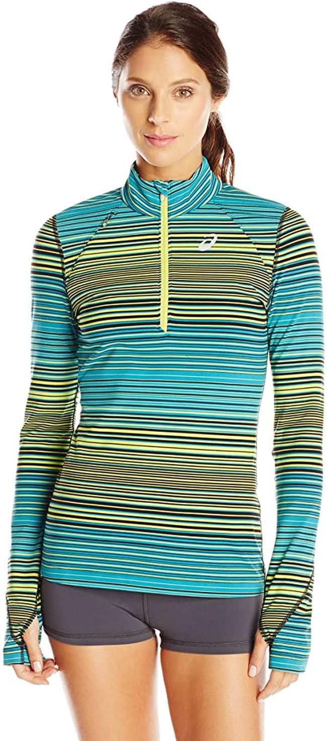 Asics W Thermostripe Lightweight Thermal 1/2 Zip Top Electric Lime Stripe