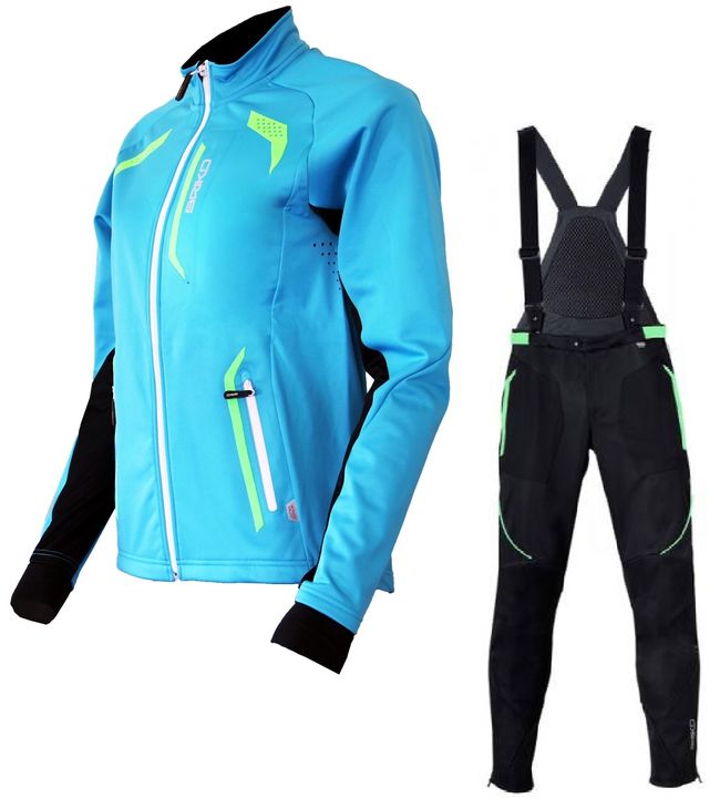 Дуже якісний костюм (куртка та штани) на бігові лижі для вимогливих лижників і спортсменів. Зшита з двох типів функціональних тканин: Dynamo 2 спереду - двошарової вітронепроникної тканини, яка має водовідштовхувальні властивості - і тканина Thermofit ззаду. Поєднання матеріалів забезпечує кращий захист від вітру та снігу, не даючи тим часом зайвій кількості вологи накопичуватися під курткою. Блискавка на спині для додаткової вентиляції. Також куртка має керамічні вставки Ceramica Protek з боків.
