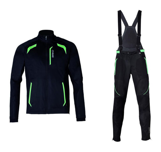 Briko Mito black fluo green уже якісний костюм (куртка та штани) на бігові лижі для вимогливих лижників і спортсменів. Зшита з двох типів функціональних тканин: Dynamo 2 спереду - двошарової вітронепроникної тканини, яка має водовідштовхувальні властивості - і тканина Thermofit ззаду. Поєднання матеріалів забезпечує кращий захист від вітру та снігу, не даючи тим часом зайвій кількості вологи накопичуватися під курткою. Блискавка на спині для додаткової вентиляції. Також куртка має керамічні вставки Ceramica Protek з боків.