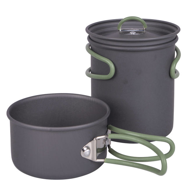 Bo-Camp Explorer 2 Pieces Hard Anodized Anthracite-Green - це компактний і легкий комплект алюмінієвого посуду для 1-2 осіб, ідеальний для походу або кемпінгу.