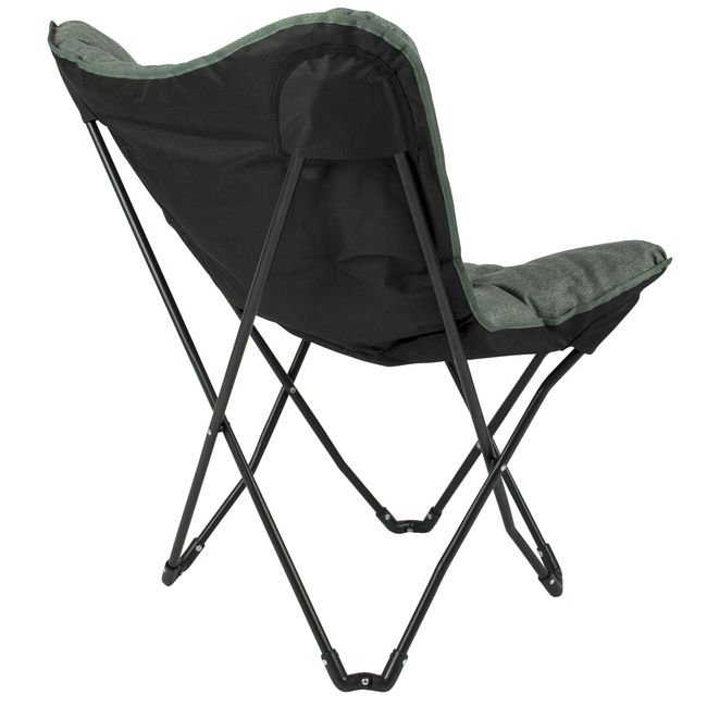 Крісло дуже легке для своїх розмірів, а сталевий каркас легко складається, завдяки чому крісло зручно переносити, в тому числі в чохлі. Крісло обладнане пластиковими ніжками, має елегантний дизайн і якісну, приємну на дотик тканину, тому воно точно не буде пилитись в кутку до наступної поїздки на природу. Адже ця модель також чудово виглядає в домашньому інтер'єрі.