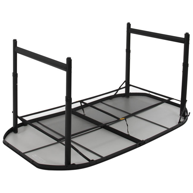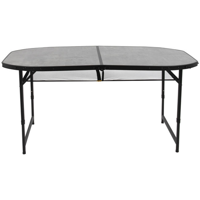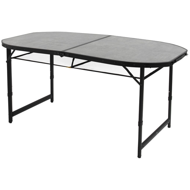 Більша версія столу Bo-Camp Northgate Oval 150x80 cm Black/Grey, відрізняється від молодшої моделі більшими розмірами стільниці і телескопічними нерозбірними ніжками, що регулюються в трьох рівнях висоти 55/65/70 см.