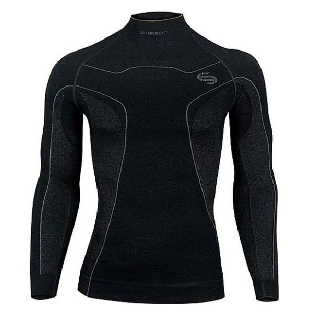 Brubeck Merino Soft Black - Чоловіча блуза - що рекомендується для фізично активних осіб на холодні погодні умови, виконана з двошарового безшовного трикотажу. Підтримує оптимальну температуру тіла, забезпечуючи неймовірний комфорт при низьких температурах. Чудова ізоляція в поєднанні з низькою вагою. Зберігає нейтральний запах (бактеріостатика).