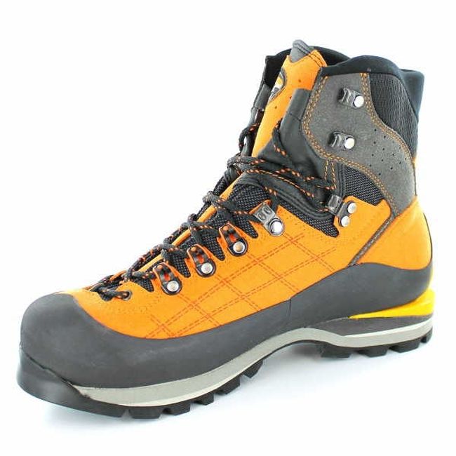 Альпіністське взуття: жорсткі, важкі, прогумлені та захищені по колу черевики, іноді з вбудованими гетрами (з окремим внутрішнім черевиком).
