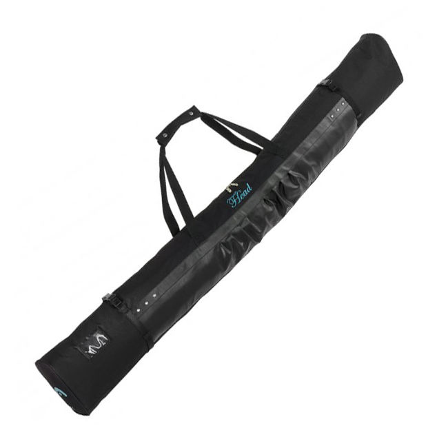 Жіночий чохол для однієї пари лиж. Оснащений двома пряжками, простий в налаштуванні, стиснення ременів і зручним ремінцем для перенесення. Підкладка бірюзового кольору, а також вишита емблема в тій ж гамі.