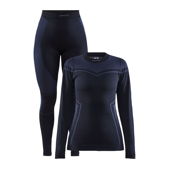 Craft Core Dry Fuseknit Set Woman Black - Жіночий комплект функціональної термобілизни для будь-яких видів зимових занять. Складається з футболки з довгим рукавом та кальсонів. Має добрі вологовідвідні властивості. Технологія Fuseknit, яка поєднує в собі безшовну конструкцію, ергономічну посадку та мінімум пласких швів, гарантує оптимальну свободу рухів і високий рівень комфорту.