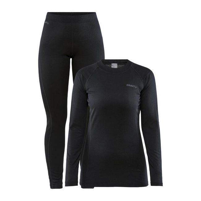 Craft Core Warm Baselayer Set Woman - Жіночий базовий комплект термобілизни націлений на людей, сконцентрованих на дозвіллі, які шукають зручний і функціональний комплект нижньої білизни для низьких температур. У комплект входить термокофта і термокальсони, виготовлені з м'якого трикотажного матеріалу з начосом усередині, що має гарну теплопровідність, щоб дати вам приємне відчуття тепла і сухості. Ергономічний крій з плоскими швами забезпечує ідеальну посадку і максимальну свободу рухів. Комплект CORE Warm Baselayer ідеально підійде для активного відпочинку та повсякденного носіння взимку.