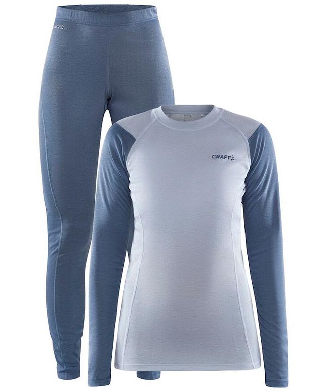 Craft Core Warm Baselayer Set Woman - Жіночий базовий комплект термобілизни націлений на людей, сконцентрованих на дозвіллі, які шукають зручний і функціональний комплект нижньої білизни для низьких температур. У комплект входить термокофта і термокальсони, виготовлені з м'якого трикотажного матеріалу з начосом усередині, що має гарну теплопровідність, щоб дати вам приємне відчуття тепла і сухості. Ергономічний крій з плоскими швами забезпечує ідеальну посадку і максимальну свободу рухів. Комплект CORE Warm Baselayer ідеально підійде для активного відпочинку та повсякденного носіння взимку.