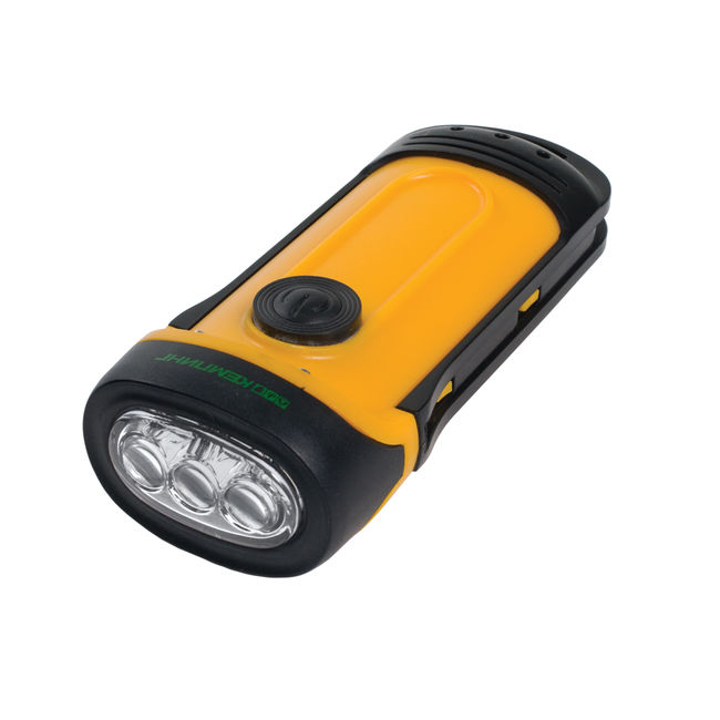 Портативний водостійкий динамо-ліхтар. Працює без батарейок. Модель має три режими яскравості, а 1 хвилина обертання зарядної ручки дорівнює 30 хвилинам освітлення. Цей ліхтар ми рекомендуємо для тривалих туристичних походів і риболовлі. Він виручить Вас скрізь, де немає можливості скористатися електрикою.