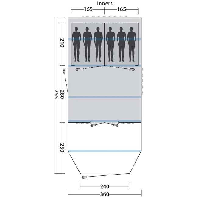 - Внутрішній намет ㅤ (Д х Ш х В): 210 х 330 х 195 см