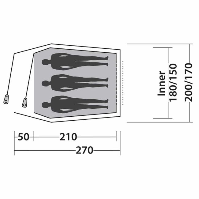 - Внутрішній намет ㅤ (Д х Ш х В): 210 х 180 х 110 см