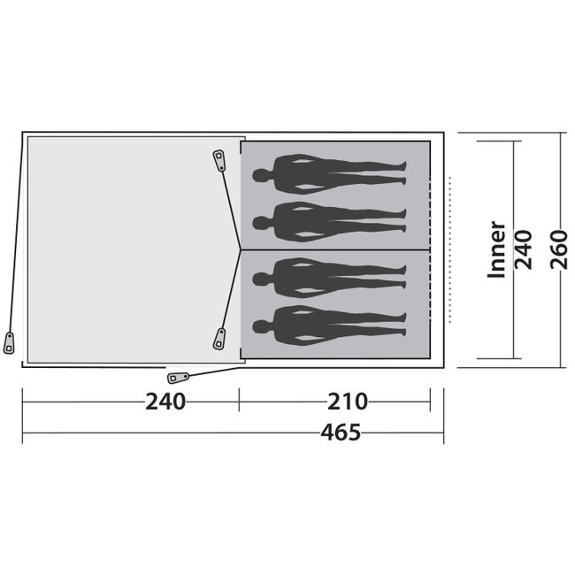 - Затемнені стіни і стеля внутрішнього намету зменшують проникнення світла, що сприяє хорошому сну.