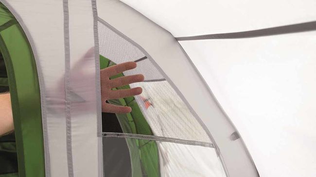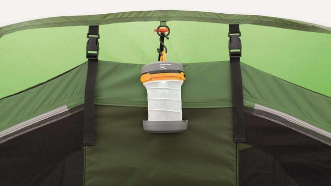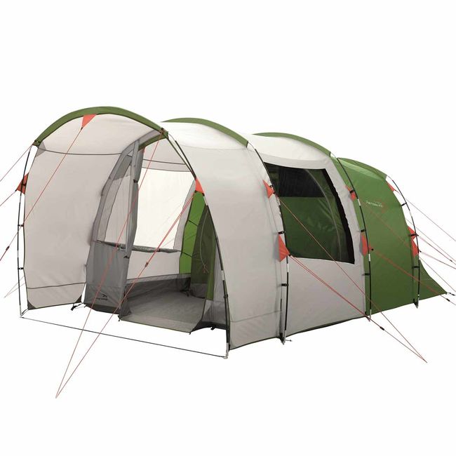 Easy Camp Palmdale 400 Forest Green — сімейний тунельний намет з просторою житловою зоною і двома затемненими роздільними спальнями зі знімною переділкою. Великі вікна зі шторами створюють відчуття простору всередині, а передній навіс захищає вхід від дощу. Високі стелі в житловій зоні утворюються завдяки попередньо зігнутим дугам, що дає змогу стояти дорослій людині в повний зріст. Вентиляційні вікна у фронтальній і тильній частині намету забезпечують циркуляцію і приплив свіжого повітря. Сон без комах гарантують внутрішні двері спалень із москітною сіткою в їх верхній частині. Відсік на блискавці дає змогу прокласти електрокабель та організувати кемпінгову кухню всередині намету. Повністю вшита підлога тамбура убезпечить від протягів і вогкості. Easy Camp Palmdale 400 ідеально підходить для пар і невеликих сімей, яким потрібен універсальний намет для комфортного відпочинку на свіжому повітрі.