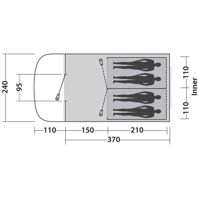 - Повністю вшита підлога захищає всю житлову площу намету.