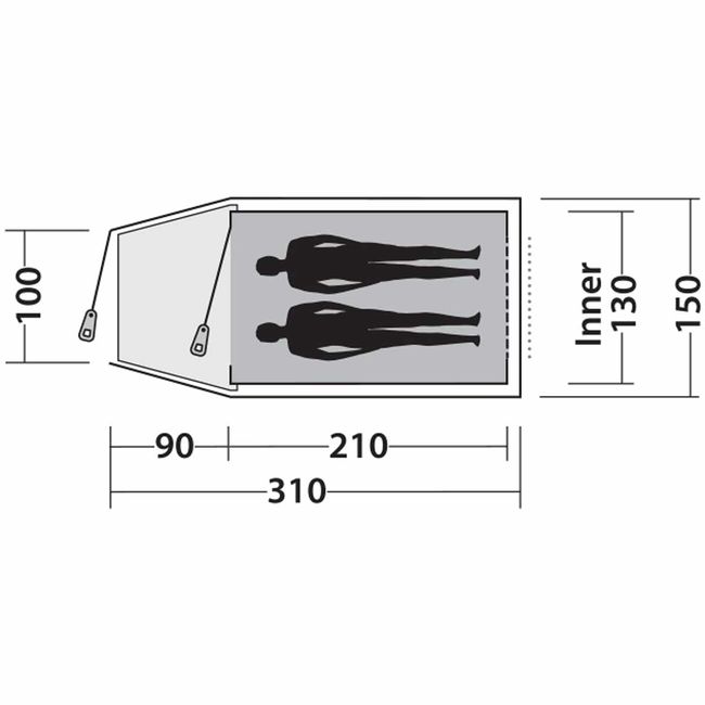 - Зовнішній намет (ДхШхВ): 310 х 150 х 110 см