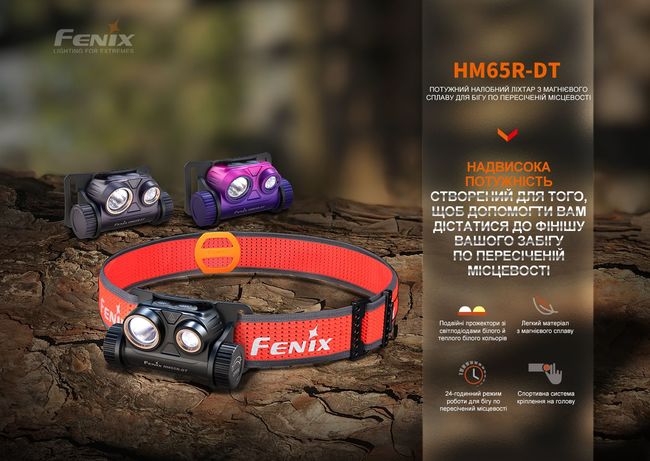 Fenix HM65R-DT - Функціональні особливості та конструкція розроблені з урахуванням потреб спортсменів, які не звикли відмовлятися від тренувань у темний час доби. Ліхтар із налобним кріпленням також підходить для туризму та активного відпочинку, оскільки освітлює дистанцію до 170 метрів і при цьому звільняє обидві руки для інших дій.