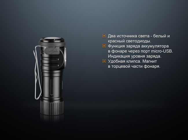 | Комплектація | Ліхтар, акумулятор Fenix ARB-L16-700, USB кабель для зарядки, запасна гумова накладка, запасне кільце, чохол, інструкція, гарантія. | ||||||