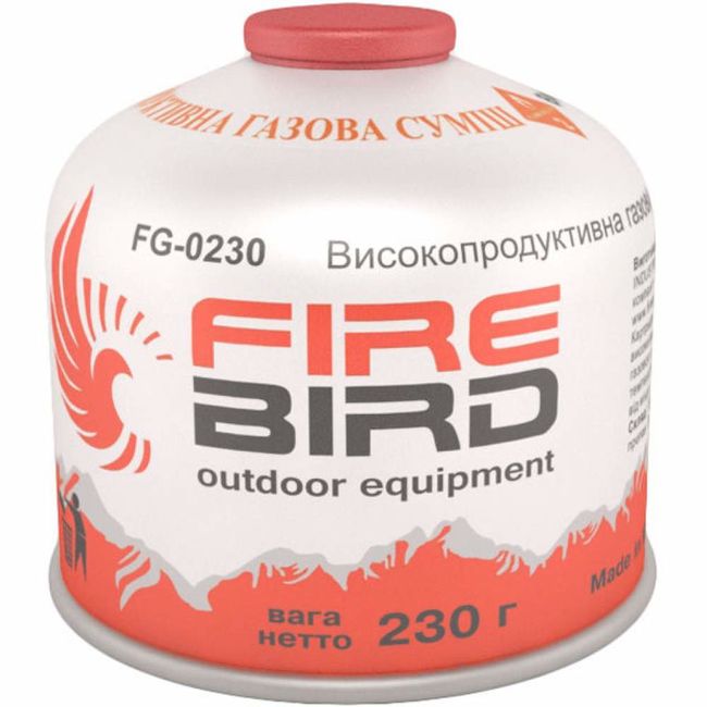 Газовий різьбовий балон на 230 г від виробника FireBird. Можливе використання з усіма приладами інших виробників аналогічного стандарту.