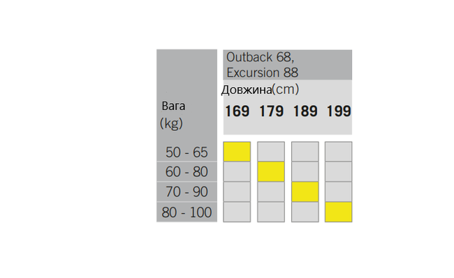 | Ростовки, які випускаються, см | 169 / 179 / 189 / 199 |