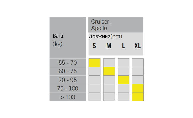 | Ростовки, які випускаються, см | S(164), M(174), L(184), XL(189) cm |