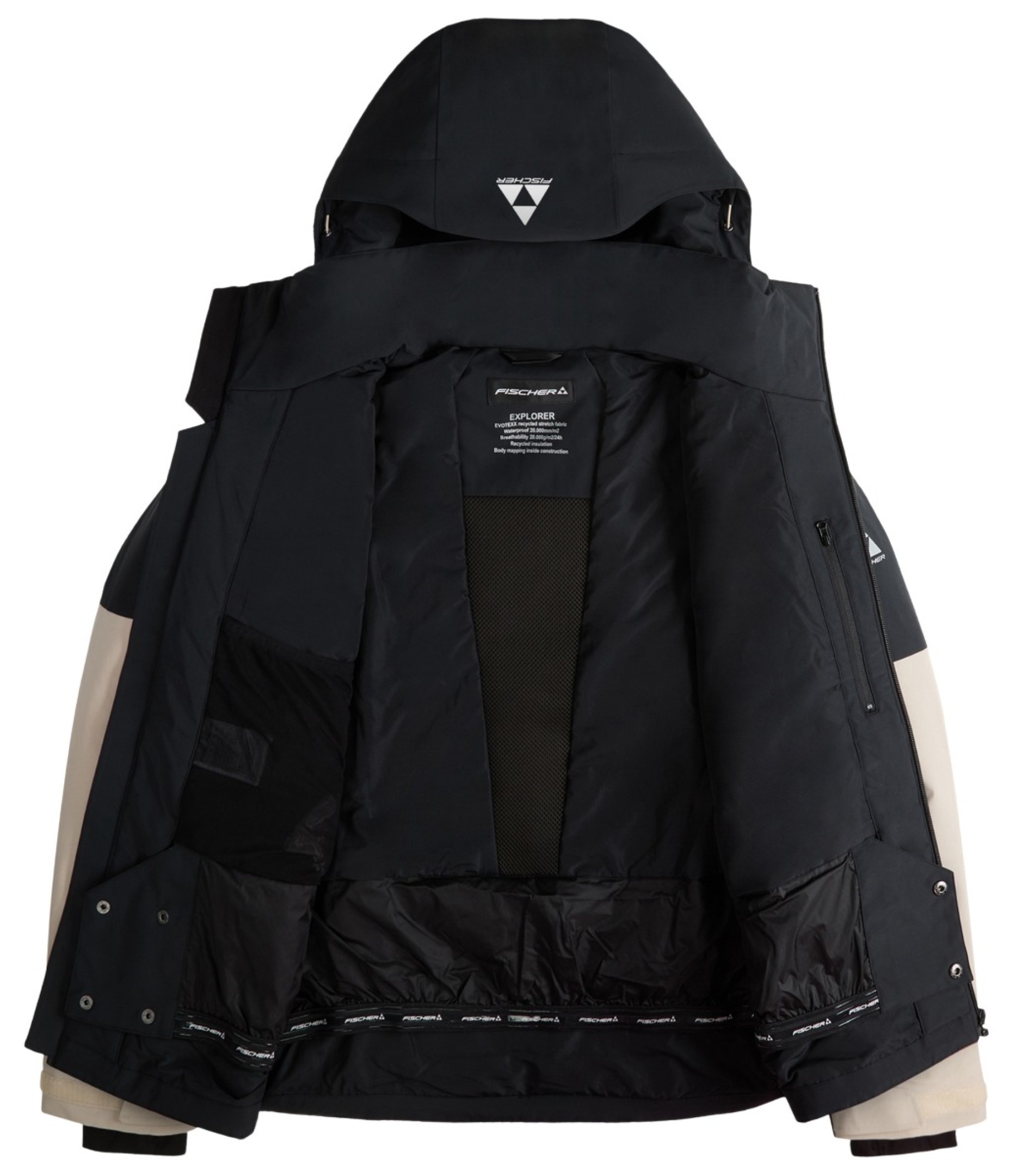 Fischer Explorer — Лижна куртка з технологією Evotexx пропонує високий комфорт та функціональність. Вона виготовлена з двосторонньо еластичного матеріалу з водяним стовпом 20 000 мм та повітропроникністю 20 000 г/м²/24 год.