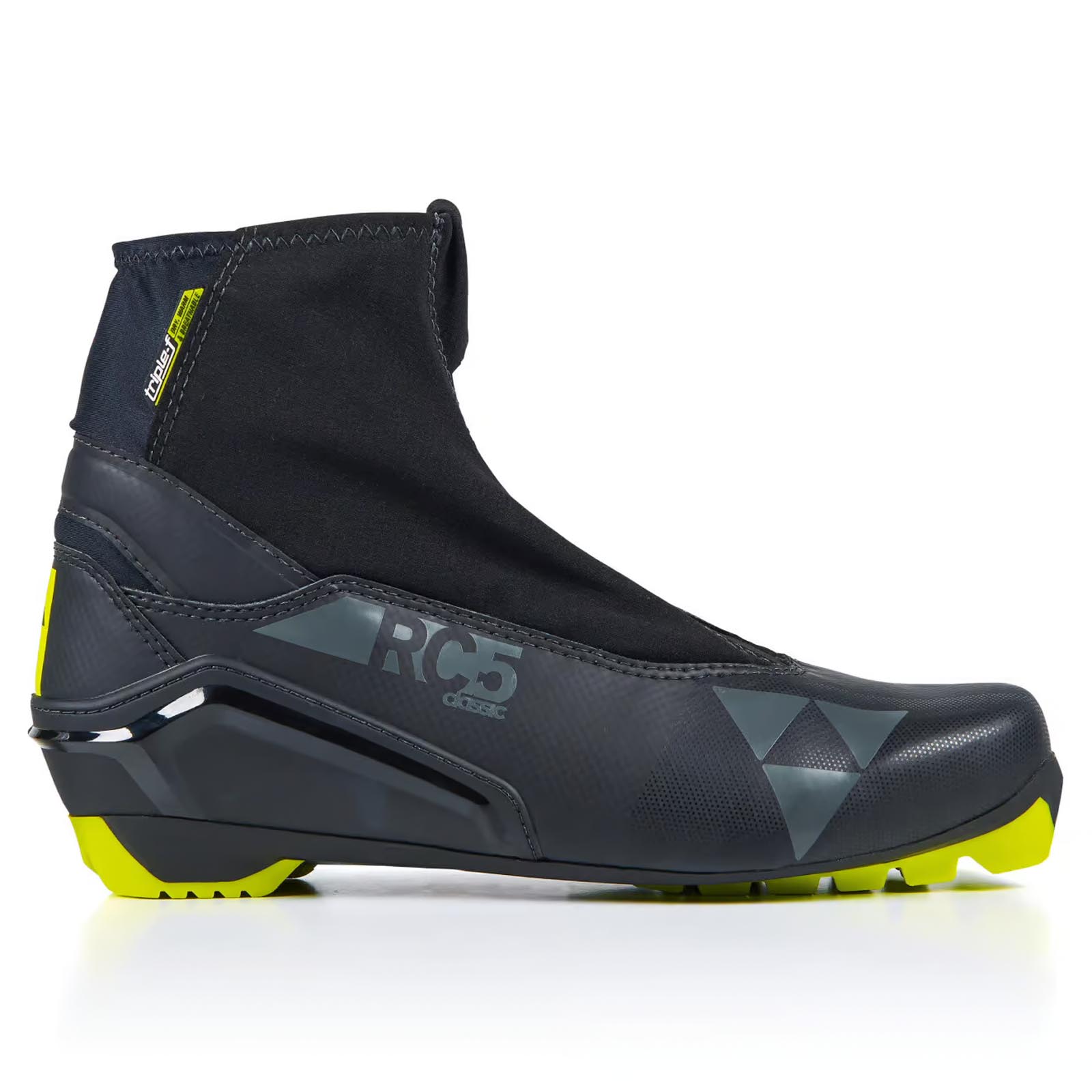Fischer RC5 Classic - Призначені як для тренувань, так і для змагань, створені на основі гнучкої класичної підошви для легкого відштовхування. Ці черевики оснащені шнурівкою Speed Lock та п'ятою Thermo Fit для надійної та зручної посадки. Дихаюча мембрана Triple-F дозволяє випаровуватися волозі, зберігаючи ноги сухими. Вага: 410 г.