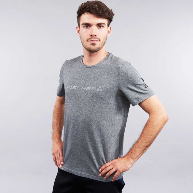 Fischer T-Shirt Big Logo Grey Melange - класична футболка з круглим вирізом і логотипом CI з принтом Fischer по центру спереду, зручна у використанні завдяки високому вмісту бавовни. Вільний крій підкреслює будь-яку фігуру.