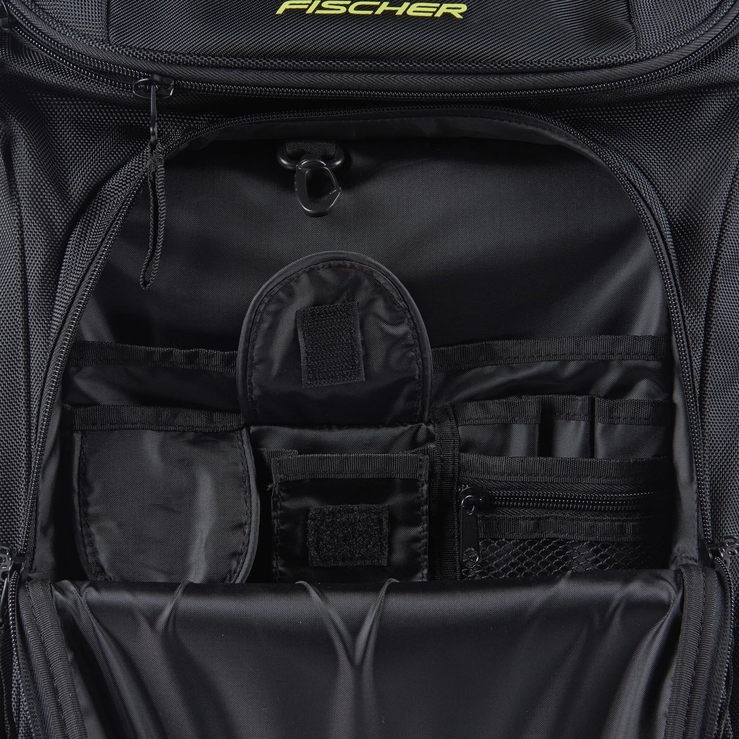 Fischer Team Tourer 42L — Захисне відділення для електроніки вміщує ноутбук або планшет діагоналлю до 17 дюймів, залишаючи основне відділення вільним для інших потреб, загальний об'єм якого становить 42 літри. М'яка телескопічна ручка та безшумні колеса дозволяють легко пересуватися. Матеріал: 100% поліестер.