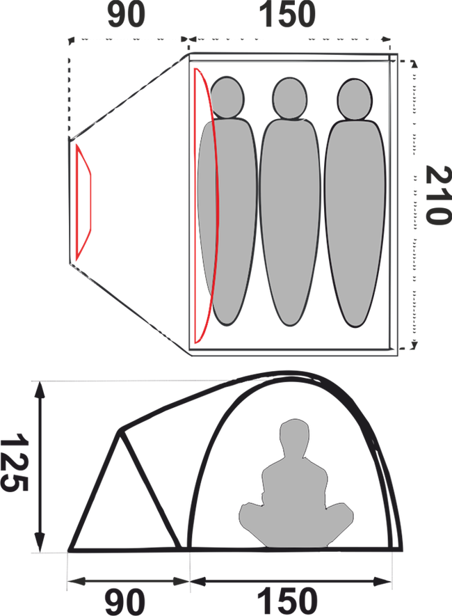 | Зовнішній тент | 185Т поліестер Rip Stop 3 000 мм Н2О, вогнетривка пропитка, проклеєні шви |