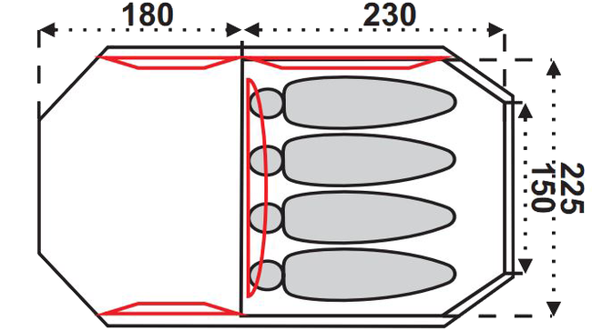 Намет розрахований на 4 осіб, має просторий тамбур для готування їжі та