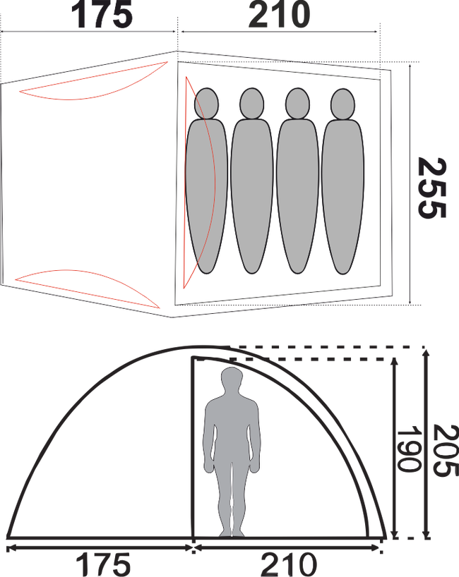 | Зовнішній тент | 185Т поліестер Rip Stop 3 000 мм Н2О, вогнетривка пропитка, проклеєні шви |