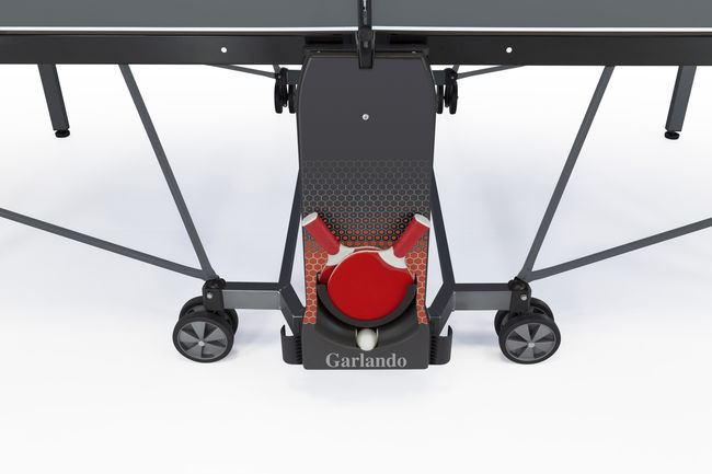 Складана конструкція з автоматичною системою блокування забезпечує зручне зберігання столу в домашніх умовах. Піднявши одну з половинок стільниці, тенісний стіл можна використовувати як для одиночних тренувань, так і для гри людьми з обмеженими можливостями. Стільниця забезпечує хороший відскік м'яча, а покриття антивідблиску дозволяє грати довше, не напружуючи очей. Тенісний стіл Garlando Premium Outdoor 6 mm Grey (C-570E) відповідає Європейським стандартам безпеки EN 14468-1/2, рекомендований для інтенсивного використання в школах і клубах.