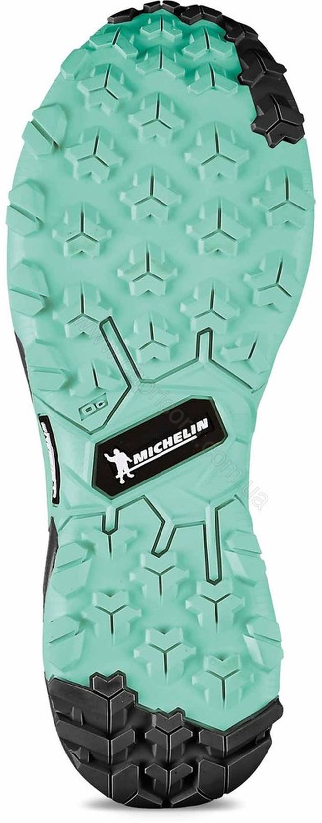 - зовнішня частина підошви Michelin® Free Cross має агресивний малюнок протектора, спрямований на максимальне зчеплення і стійкість на природному рельєфі в поєднанні з амортизаційним ефектом внутрішніх шарів, виконаних з піни EVA