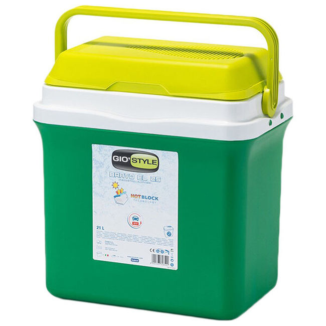 GioStyle Bravo 25 12V - Портативний холодильник в авто з корисним об'ємом камери 25 літрів працює від напруги бортової мережі автомобіля 12 В.даний пристрій стане особливо корисним в жарку пору року для походів на пляж, пікнік, риболовлю, в далеких поїздках – завдяки здатності охолоджувати вміст на 13 градусів нижче температури навколишнього середовища. Місткість: 30 шт. ж/б банок об'ємом 0.33 л.