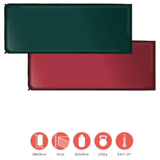 - Самонадувна конструкція забезпечує найвищий рівень термоізоляції на одиницю товщини в порівнянні з надувними і закритопористими килимками