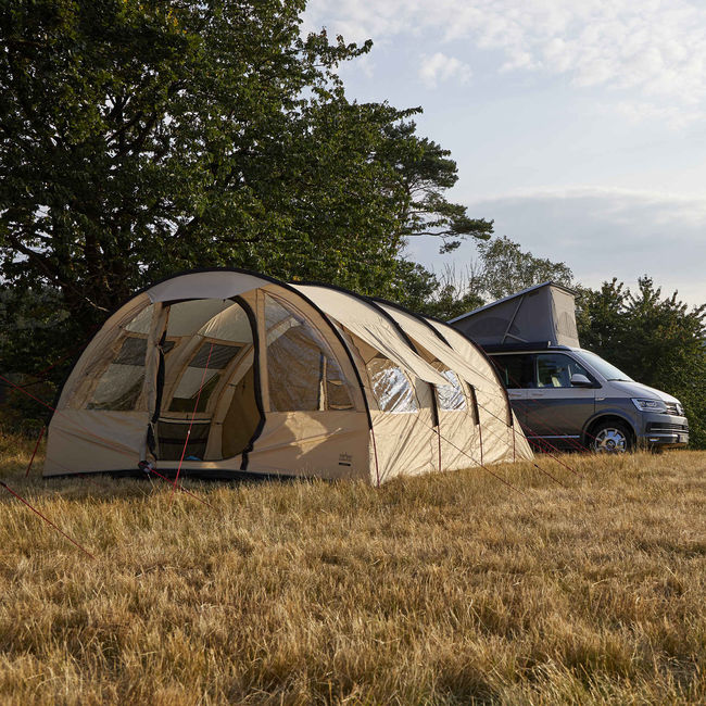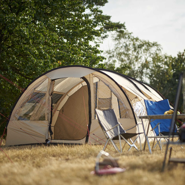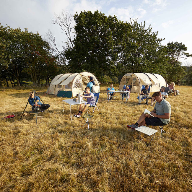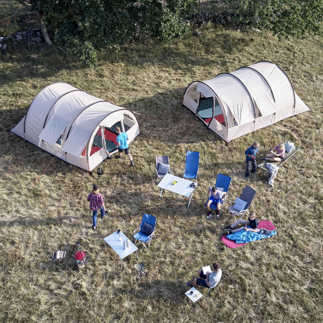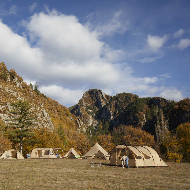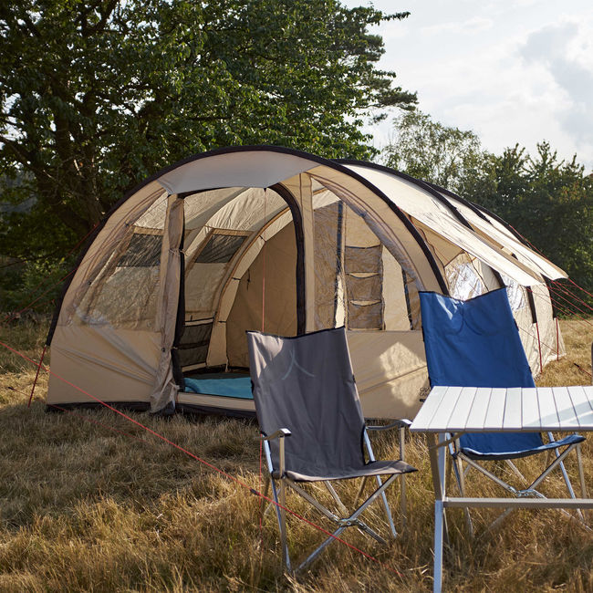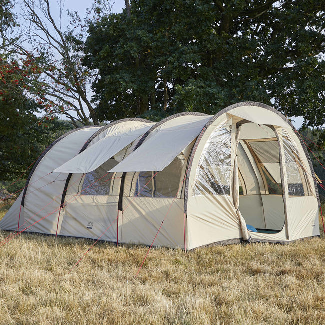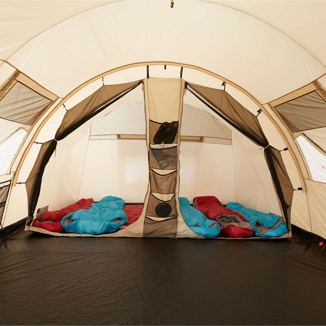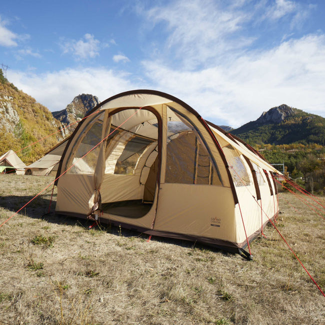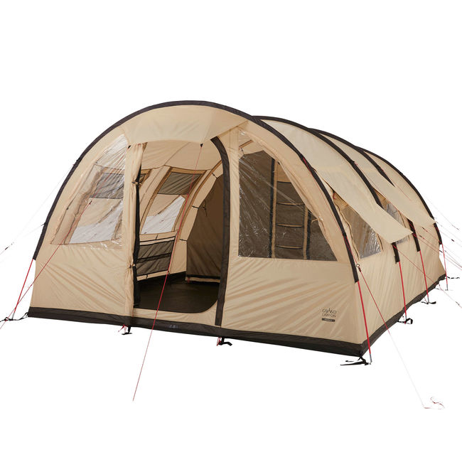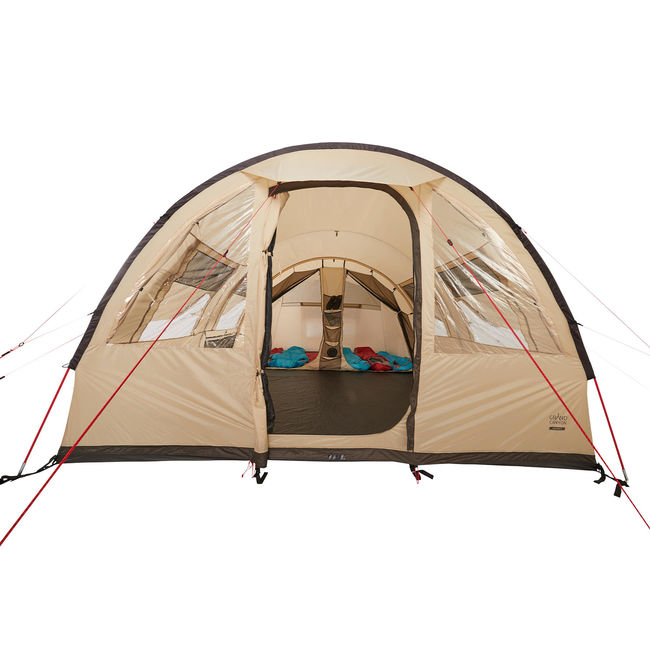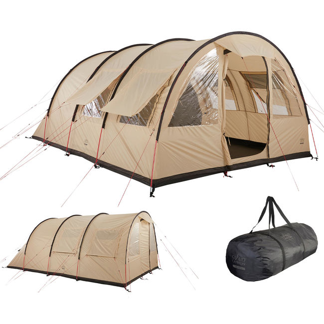 Grand Canyon Helena 6 - Велика компанія або велика родина потребує дійсно великий і просторий намет, саме тому має величезний попит у любителів відпочинку на природі та в кемпінгу. Величезний тамбур де можна розмістити кемпінгову кухню та кілька людей для відпочинку і спілкування під час негоди, розділений шторкою приватності на дві частини спальний простір, великі прозорі вікна із вставками москітної сітки, висока стеля, що дозволяє стояти в повний зріст - все це забезпечує значний внутрішній простір, велику кількість світла та гарну вентиляцію.