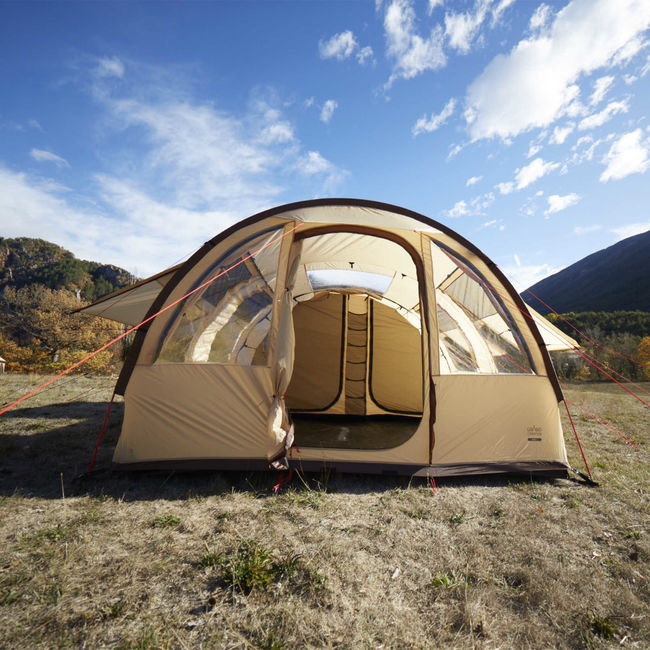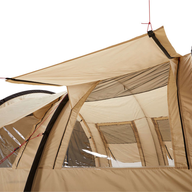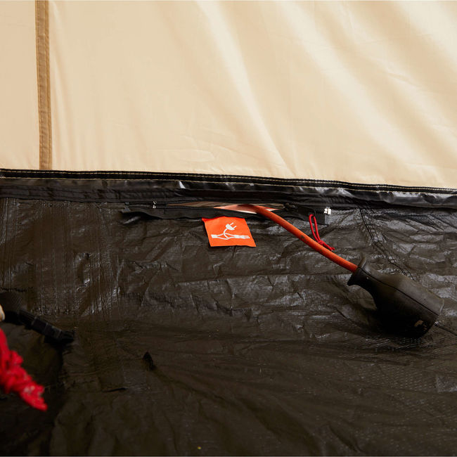 - Двері внутрішнього намету мають як шторку з тканини, так і вбудовану москітну сітку, кожна з яких оснащена окремою блискавкою. Це дозволяє регулювати рівень вентиляції та температуру всередині намету.