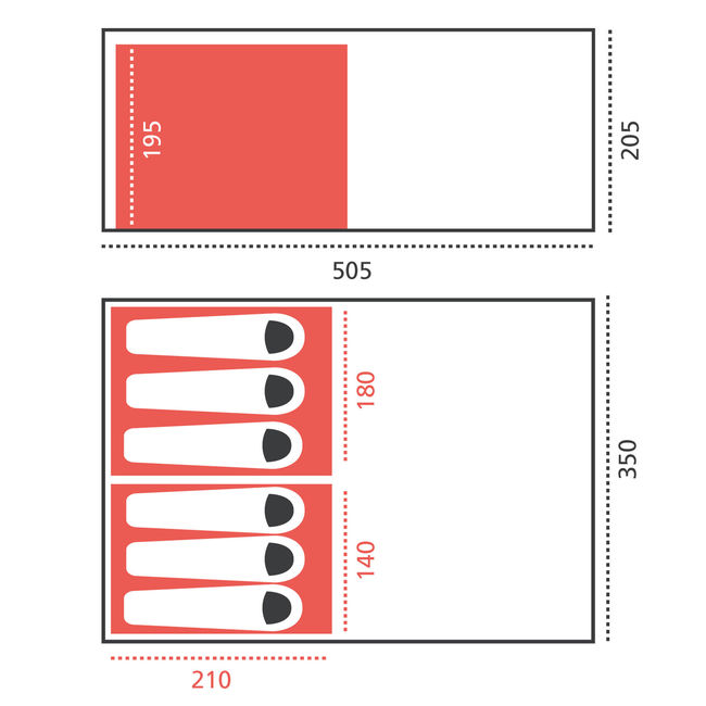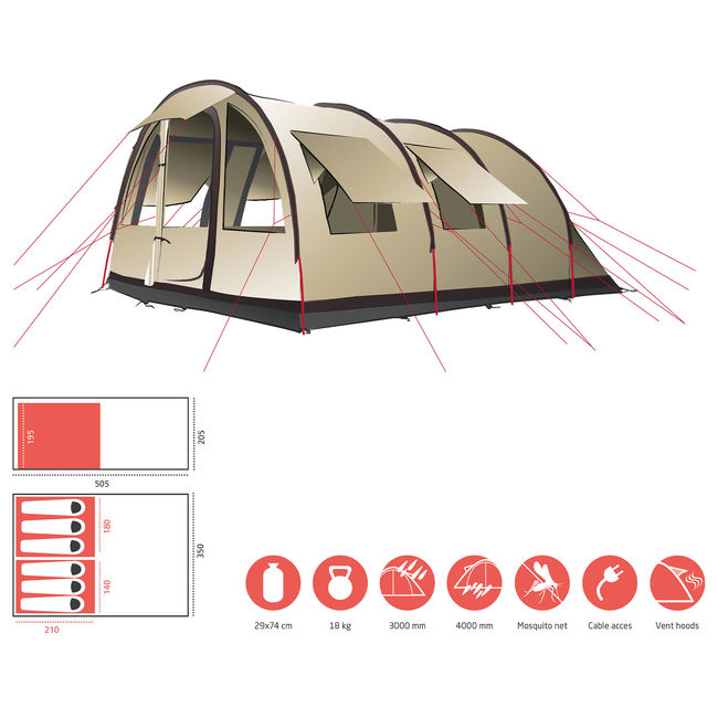 - Зовнішній намет (Д х Ш х В): 505 х 350 х 205 см