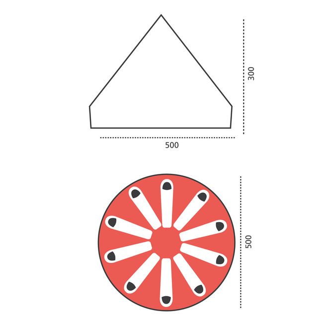 - Зовнішній намет (Д х Ш х В): 500 х 500 х 300 см