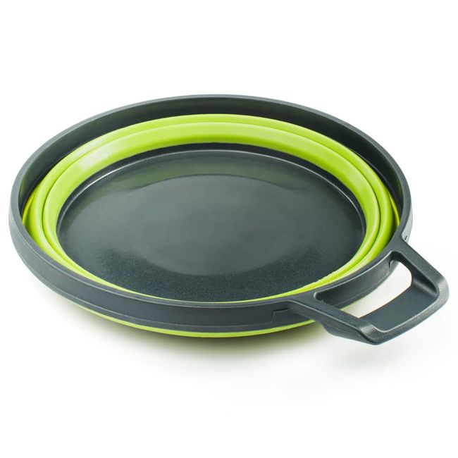 GSI Outdoors Escape Bowl+Lid Green — має особливий складний дизайн – для зручності пакування з легкістю трансформується в диск висотою лише 27 мм. Виготовлена з прозорого поліпропілену серії Infinity кришка герметично закручується на обідку та дозволяє безпечно транспортувати їжу під час мандрівки. Завдяки міцному обідку та стійкому дну із товстого нейлонового матеріалу миска відмінно тримає форму та унеможливлює проливання вмісту. Для швидкого визначення об’єму рідини та легкого порційного вимірювання на внутрішній стороні нанесено шкалу.