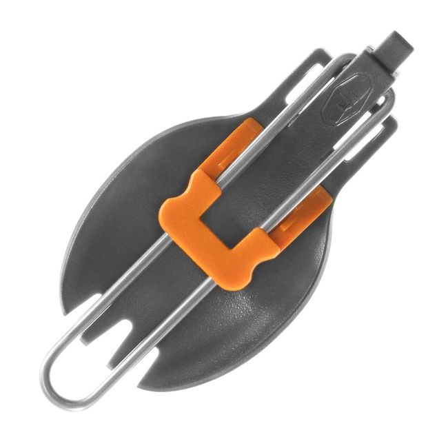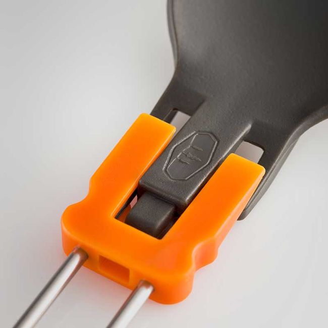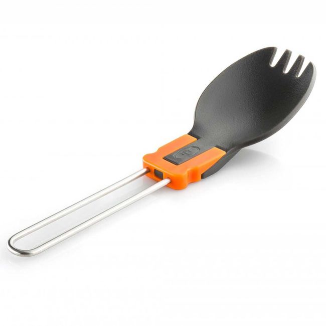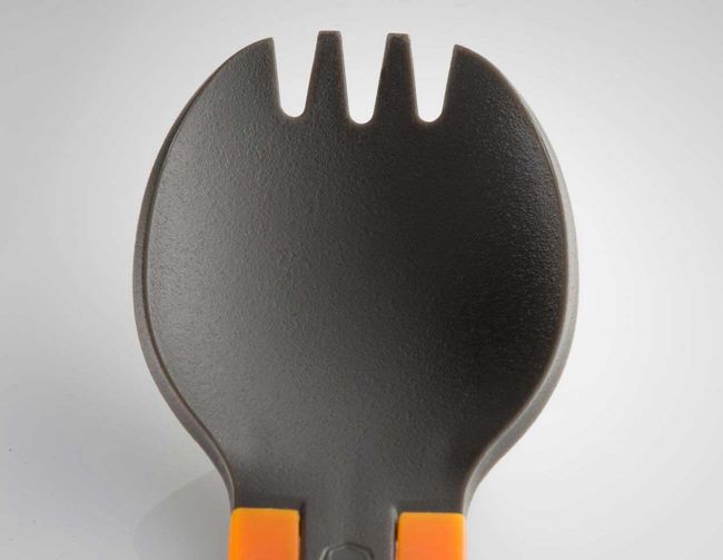 GSI Outdoors Folding Foon Orange — одночасно виконує функцію виделки та ложки. Завдяки особливій складній конструкції виріб можна скласти наполовину. Мультифункціональна Вилко-Ложка складається з двох частин: чашоподібної, яка виготовлена із міцного матеріалу ацеталь, та ручки із нержавіючої сталі. Виконана у кількох кольорах, ложка-виделка стане гарним доповненням до посуду з лінійки GSI Outdoors nFORM Ultralight and Crossover, який має таке ж забарвлення. Кожен відпочивальник може обрати свою кольорову гаму, завдяки чому столові прибори просто неможливо сплутати з чужими.