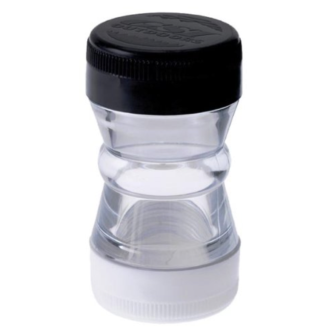 GSI Salt + Pepper Shaker - це легкий водонепроникний шейкер для перцю і солі. Кришки на різьбі зберігають вміст шейкеру сухим та ароматним. Компактний корпус містить два відділи. Дозволяє туристам економити місце і оптимізувати вагу багажу.