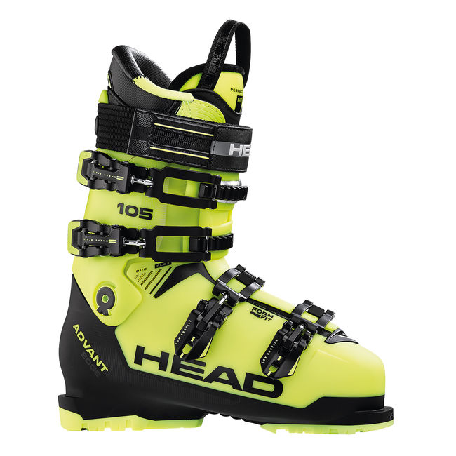 Head Advant Edge 105 Yellow Black - Технологічна модель черевиків для лижників любителів - поєднує контроль і комфорт. Геометрія черевика розроблена для досягнення більш збалансованої позиції над лижами: передача зусилля і зворотний зв'язок відбувається швидше і ефективніше.