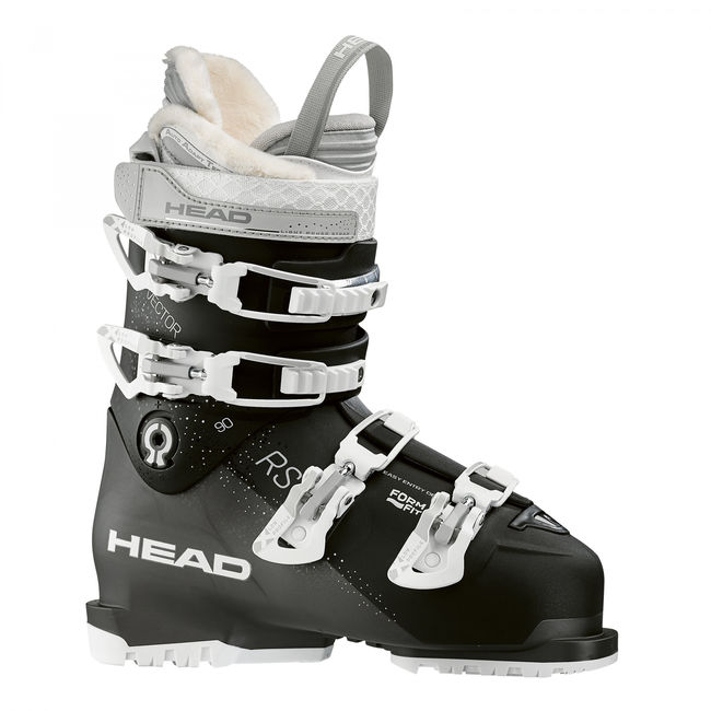 Head Vector RS 90 W побудовані на базі досить вузької колодки 98 мм (26,5), яка підійде для прогресивних і експертів. Рівень жорсткості 90/80, вузька колодка і традиційно висока торсійна стабільність робить ці черевики близькими до серії Raptor по геометрії, флексу і точності. У той же час ця модель має багато комфортних зручностей, таких як утеплення Primaloft і висока здатність до кастомізації. Поєднання систем термоформування зовнішнього пластику Form Fit і внутрішнього черевика Perfect Fit забезпечує практично ідеальну посадку черевика по нозі для будь-якого самого вимогливого експерта. Це одна з кращих моделей для дівчат з вузькою ногою, яким потрібен черевик з рівнем жорсткості 90/80.