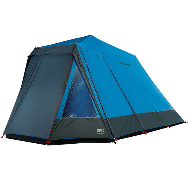 High Peak Colorado 180 4 Blue - Двошаровий 4-х місний намет з просторим тамбуром. У тамбура є прозоре вікно, крім двох вентиляційних вікон, є захисна спідниця, що захищає від бруду. Швидко встановлюється внаслідок відсутності дугового каркаса. Намет встановлюється на стійках.