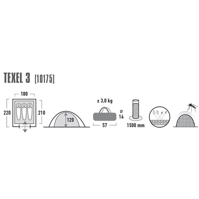 High Peak Texel 3 Blue Grey - Двошаровий чотиримісний шатровий намет High Peak Texel 4 легко встановлюється й підійде для кемпінгу на вихідних. Широке спальне місце гарантує комфортний сон після активного дня. Вентиляційний клапан і москітна сітка на вході забезпечать приплив свіжого повітря й захист від настирливих комах.